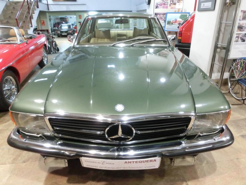 3.499 CC., 200 CV, 8 CILINDROS EN V, CAMBIO AUTOMÁTICO 3 VELOCIDADES, CÓDIGO MOTOR M116, MOTOR 116982, V8, 16 VÁLVULAS, INYECCIÓN ELECTRÓNICA BOSCH, SERIE W107 COUPE, BASTIDOR 107.023, MATCHING NUMBERS, DIRECCIÓN ASISTIDA, SERVOFRENO, 4 FRENOS DE DISCO, PINTURA METALIZADA PINE GREEN (PINIENGRÜN) - CÓDIGO COLOR 862G, TAPICERÍA DE CUERO BEIGE CAMEL DE GRAN CALIDAD, 5 PLAZAS, CINTURONES DE SEGURIDAD TRASEROS, TECHO SOLAR ELÉCTRICO, RADIO-CASSETTE BECKER MEXICO STEREO, ANTENA AUTOMÁTICA, DOBLE ESPEJO RETROVISOR, 4 ELEVALUNAS ELÉCTRICOS, LUNETA TÉRMICA, APERTURA VENTANILLAS PANORÁMICA, FAROS ANTINIEBLA, CIERRE CENTRALIZADO, 5 LLANTAS ORIGINALES MB BAROCK 14", SISTEMA DE LAVAFAROS, PERFECTO ESTADO Y FUNCIONAMIENTO, ESTRENADO EN ESPAÑA, MATRÍCULA ORIGINAL (V) Y VEHÍCULO HISTÓRICO, ITV CADA 4 AÑOS, DOCUMENTACIÓN e ITV AL DÍA. INCLUYE FUNDA A MEDIDA DE GRAN CALIDAD PARA INTERIORES. MÁS INFORMACIÓN EN: https://antequeraclassic.com/catalogo/mercedes-benz-350slc-c107