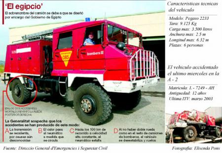 El plan director del cuerpo de bomberos recomienda la retirada de los camiones autobomba rurales --como el utilizado ayer-- tras una vida útil de 15 años, pese a que en algunos países europeos este material se jubila al cabo de 10 años de uso. El mismo documento reconoce que, en marzo de 2003, bajo el Gobierno de CiU, el 39,6% de los vehículos de los bomberos catalanes habían superado la recomendación oficial.