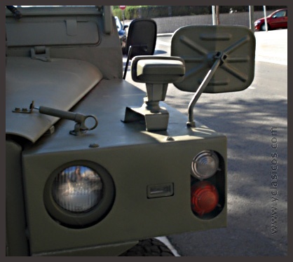 Aspecto lateral - desconozco si originalmente existe una "media capota" o bikini para este ligero militar, en cualquier caso yo he optado por hacerme una con lona militar y recubrirla con una malla tambien de origen militar, te protege eficazmente de los rayos directos del sol y cuando circulas te proyecta un brisa muy de agradecer.