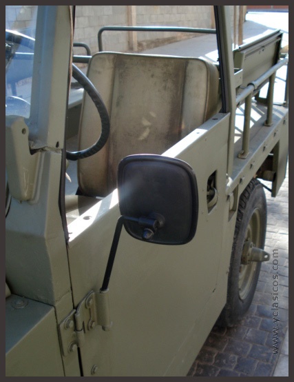 Mas detalles, los espejos delanteros han sido sustituidos por estos metalicos, más antiguos y muy dificiles de encontrar. (además estos espejos ofrecen una mejor visibilidad que los anteriores).