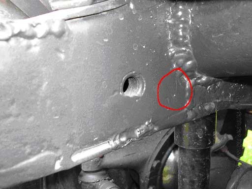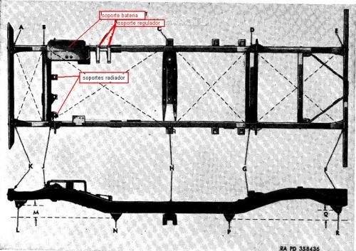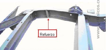 El refuerzo interior delantero derecho del chasis, el soporte del regulador o la última traviesa del chasis.