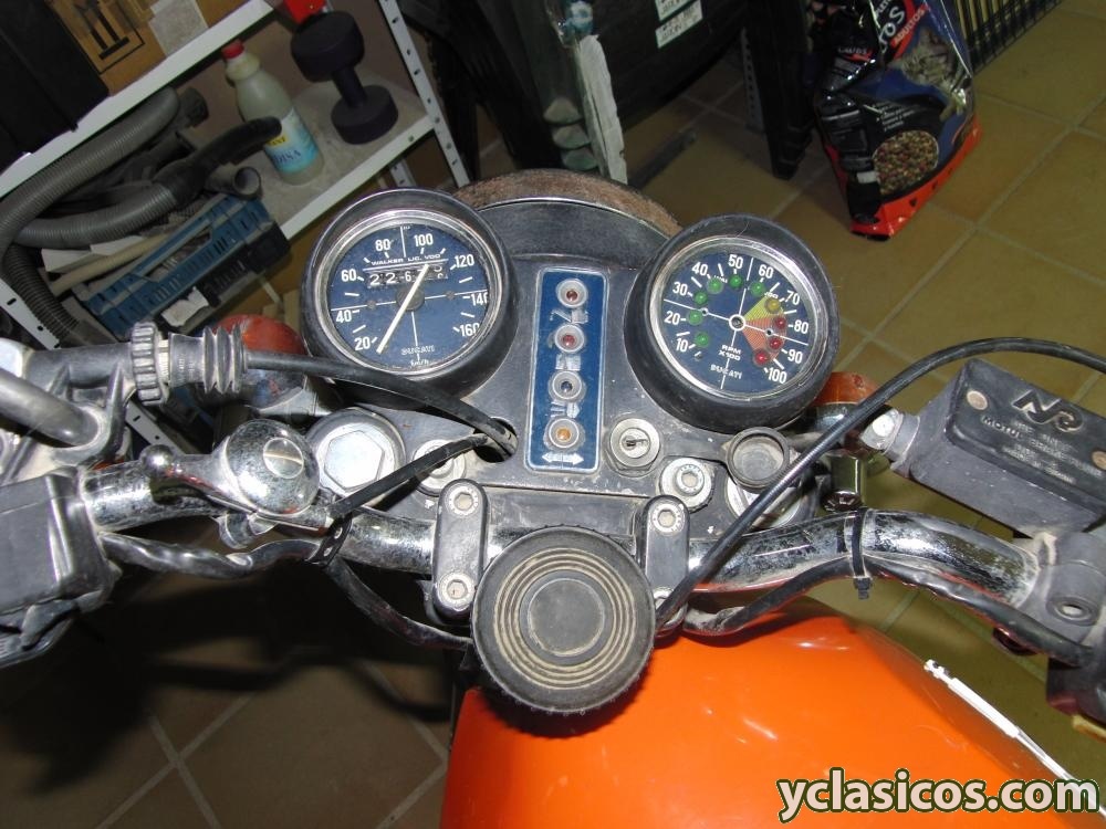Moto dada de baja con lo que se le pueden hacer los papeles, arrancando perfectamente, solo habria que hacerle una puesta a punto, funcionando todo excepto cuentarevoluciones, solo tiene picado el cromado del foco, ruedas nuevas. Precio negociable.