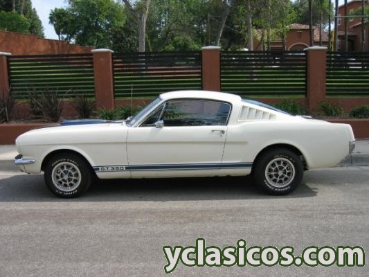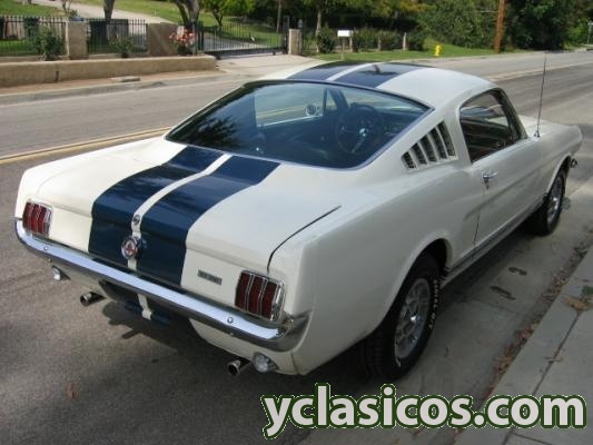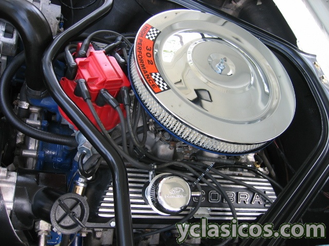 Ford Mustang GT 350 FASTBACK de 1966 con motor V8 de 4735 cc en posición delantera. Caja de cambios manual de cuatro velocidades. Tracción posterior. Tambien tiene un sistema de escape deportivo que hace rugir el potente motor V8 como una fiera.