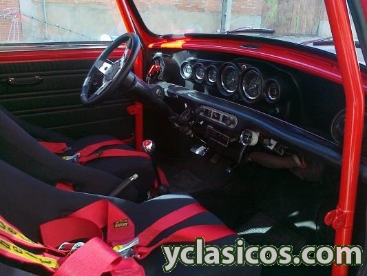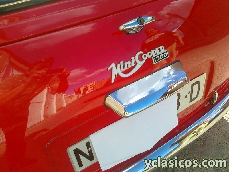 es un mini Cooper 1300 original de 1975 esta restaurado (15000 € invertidos con facturas)entero de chapa y el motor esta en rodaje montado el motor costo hacerle 6000 € con pistones forjados cigüeñal, bielas todo nuevo. El coche tiene una preparación estéticamente de competición de aquellos años, el coche se vende o se cambia por Harley ,mercedes viano