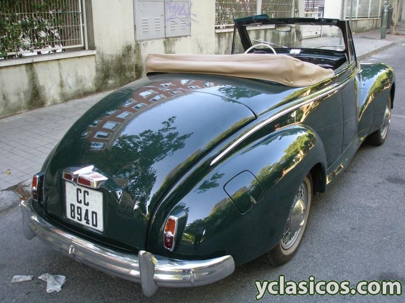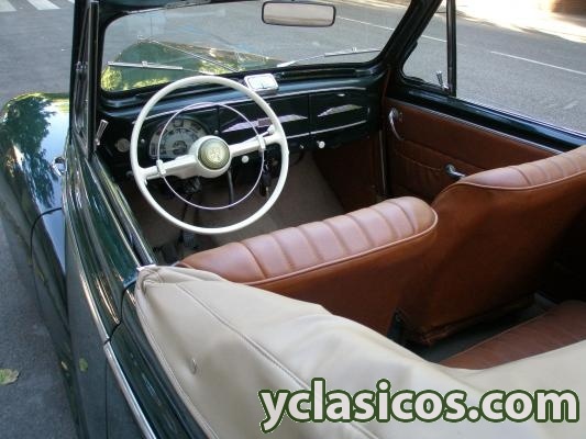 Vehiculo en perfecto estado tanto de motor como de chapa, pintura e interiores. Recientemente restaurado al 100x100%. Un verdadero cabrio de la época no un modelo reconstruido. Muy raros en el mercado ya que no hicieron mas de 2300 unidades de 1952 a 1956. Este tipo de vehiculos estan en constante revalorización como los Citroen traction cabrio, ver precios de hace tres o cuatro años y comparar con los actuales. Vehiculo con matricula nacional. Lleva ruedas de radios si se prefiere con sus llantas normales 1500€ menos. Listo para cualquir tipo de viaje. Este modelo es un 2+2 una opcion de la época.