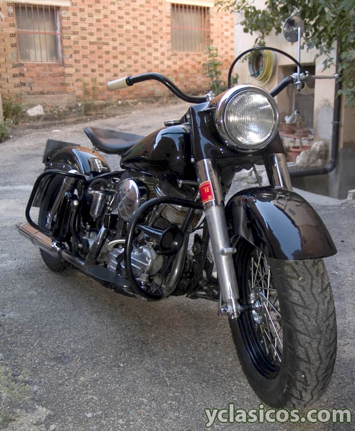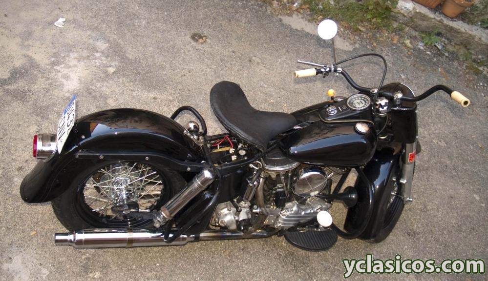 Moto Harley- Davidson en perfecto estado. Muchísimas mejoras de funcionamiento respecto al original. Bomba de aceite S&S con 40% más de potencia (entrego la original en perfecto estado), distribuidor electrónico (también entrego el original en perfecto estado), asientos de válvula para gasolina sin plomo, subida a 12 voltios, tambor de freno trasero más ancho, pistones Wiseco de alta compresión, etc,... Todo está renovado ó puesto nuevo (bujes de ruedas, rodamientos, regulador, generador, velocímetro, etc,...) Arranque a patada, regalo asiento doble con resortes exteriores muy raros de encontrar, transmisión primaria de correa sin usar (la de cadena está en muy buen estado todavía). Empujadores rígidos para mayor performatividad (entrego los regulables con sus hidráulicos en buen estado). Etc,... La moto está pintada de negro, pero te la pinto del color que quieras con una señal de 500 euros a deducir del precio final. Se puede usar perfectamente a diario como vehículo utilitario ó para distancias. Si la quieres como pieza de colección, está restaurada a origen al 100%