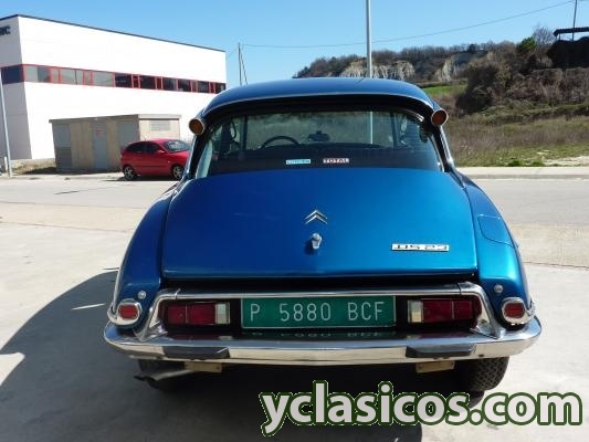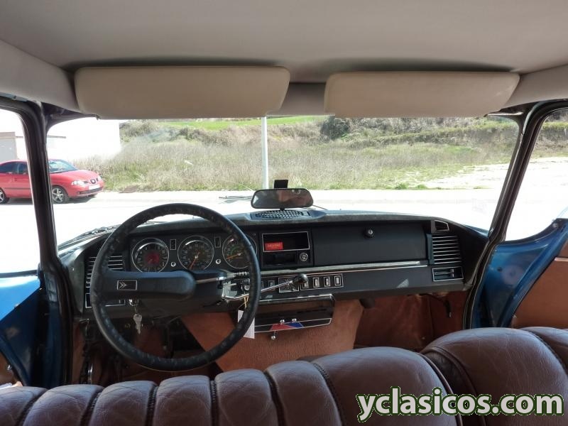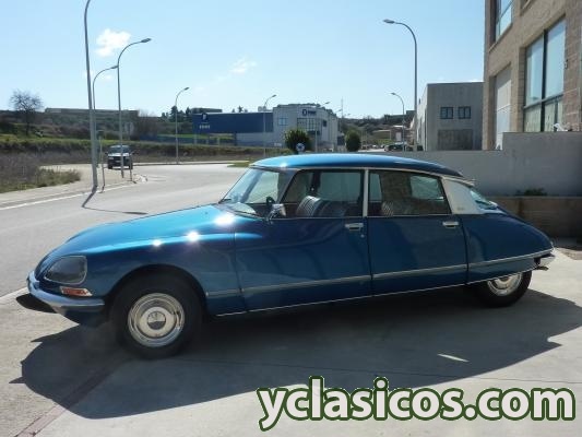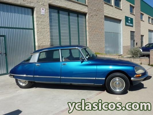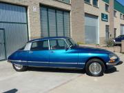 Citroen DS 23 "pallas" Carburación, cambio manual a 5 velocidades, dirección asistida, faros direccionales, color original Citroen AC 640 Azul Delta (pintura nueva), dosificador de freno tipo "champiñón", tapicería original en piel color tabaco, asiento conductor regulable en altura, cristales tintados, lector de temperatura en radiador, 115 cv.