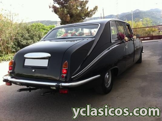 Es en color negro con interiores de madera de raiz y piel de color gris claro, el volante es a la derecha, esta fabricado de forma artesanal y monta un motor de 4.2 litros con un desarrollo de potencia de unos 180 CV. Esta matriculado como vehículo histórico en España, esta en perfecto estado de conservación y es ideal para hacer bodas desde el primer día de su compra. El coche tiene unas 45.000 millas originales desde su fabricación.