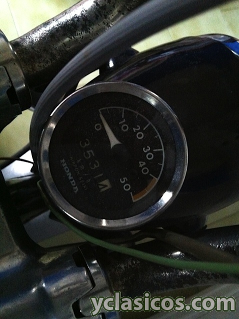 Aunque el las fotografías no aparece tengo el tubo de escape y el soporte de luz trasera. Falta el cristal delantero del faro y el trasero ademas de uno de los emblemas del tanque.