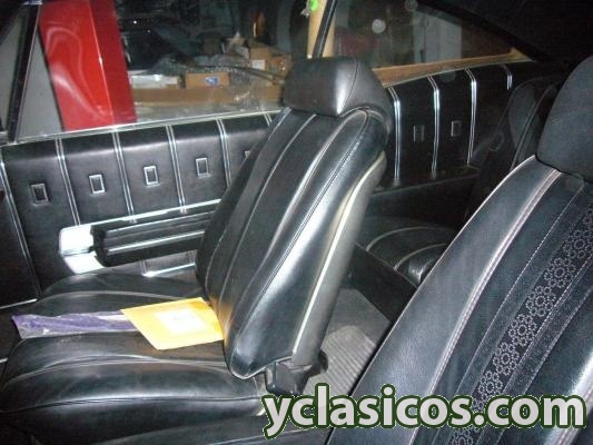 Tapiceria de vinilo negro, ventanas eléctricas, aire acondicionado, dirección asistida, asientos delanteros independientes con consola central de origen, cambio automático en el volante. Matricula nacional. El coche lleva montado un motor 350 combinado con una transmisión automática Turbo 400 Hydramatic.