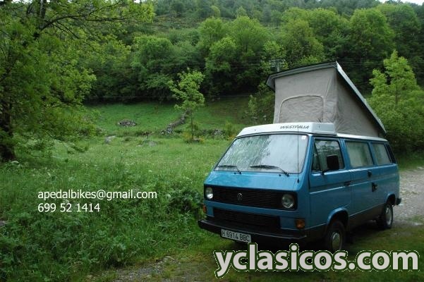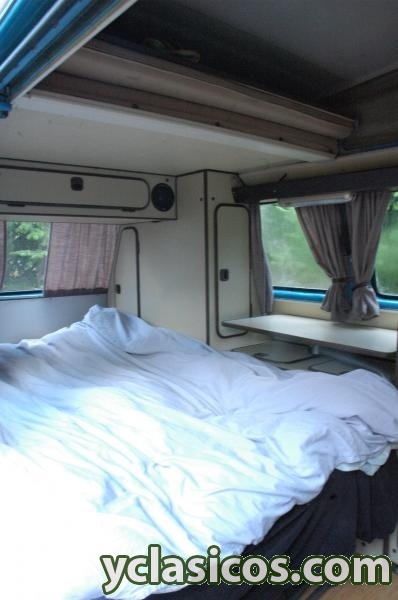 Equipamiento original camping Westfalia con techo elevable (cocina y nevera trivalente), toma de corriente exterior, segunda batería, bola de remolque, depósito de agua limpia y residual.