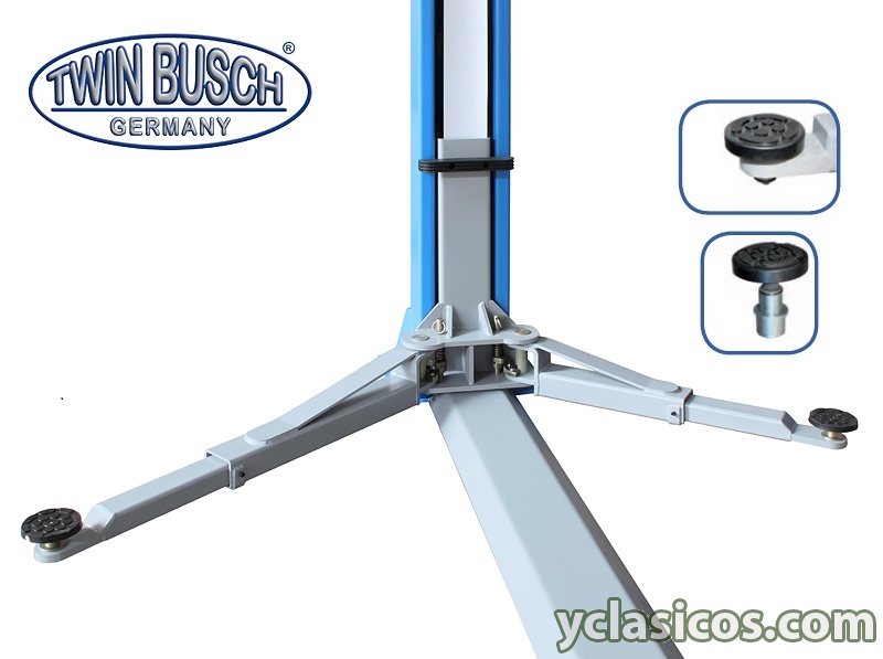 Doble sistema de seguridad automatico y electromagnético . Además 2 cables de acero para sincronizar las subida y abajad de los brazos elevadores.