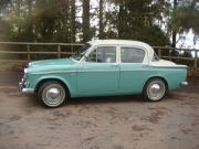 Unidad europea con volante a la izquierda, color original verde y beige, gomas de banda blanca, radio de época. Invertidos 20.000€ y mucho trabajo. Se incluye catálogo de despiece y muchos repuestos nuevos. Vehículo inglés del Grupo Rootes.