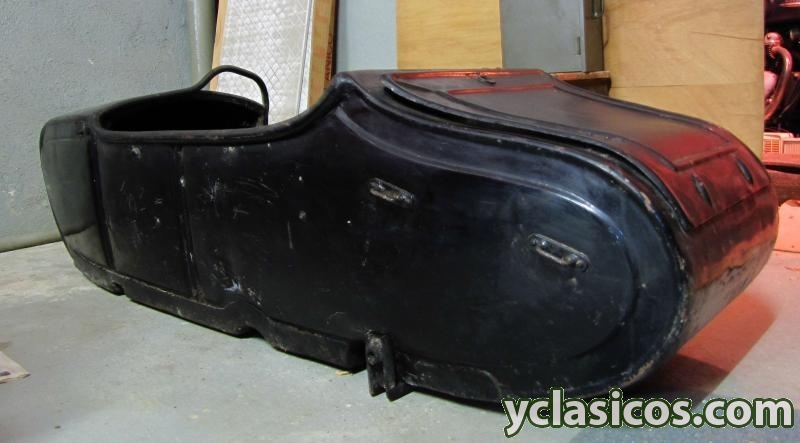 En venta barca de sidecar Steib TR500 en excelente estado, sin asiento. No tiene oxido ni golpes, está muy entero de chapa, aunque la pintura hay que rehacerla. Creo que es un TR500 de los años 40-50, para acoplarse a cualquier BMW de esta época. Se vende conjuntamente con el chasis, con guardabarros pero sin rueda. Es una pieza muy rara de encontrar. El precio de una réplica de este sidecar ronda los 3. 000 euros. Se escuchan ofertas.