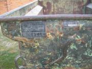 remolque de jeep willys modelo m-100, fabricado en enero del 54, tiene chapas de identificacion asi como numero de serie para matricularlo como historico solo o en conjunto con el jeep, lleva llantas de combate de m38 y lo entrego con los pilotos de guerra traseros y un cable de remolque para las luces