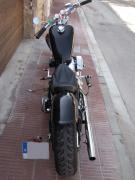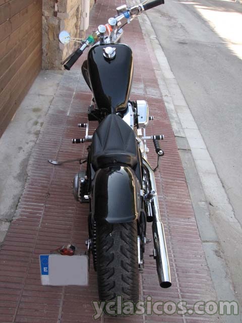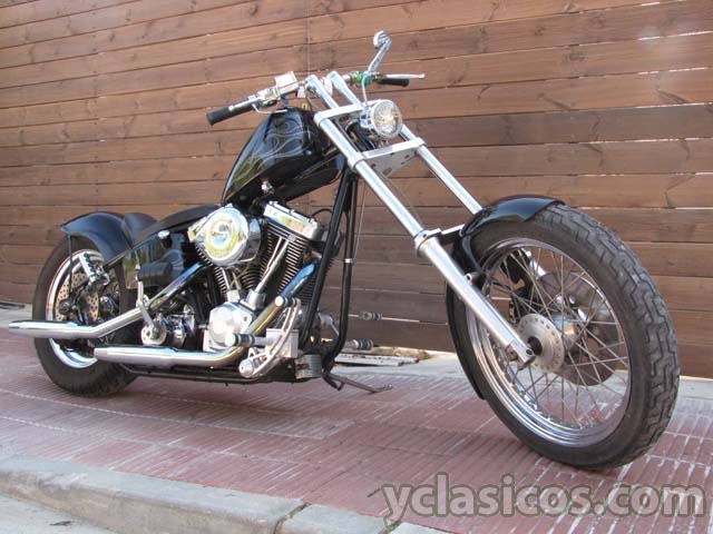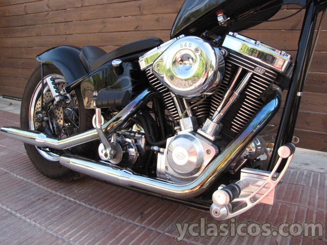 Cuadro HD, Horquilla avanzada , amortiguación delantera, rígido trasera. Ruedas Del:100/90 Tras.160/80.Horquilla modificada ACCESORIOS: Manillar, retrovisor, faro, piloto trasero, reposapiés, asiento trasero extraíble, Deposito gasolina HD, deposito aceite HD, sillón realizado a medida, Pintura tipo metalflake, especial Flames, Discos delantero y trasero, Arranque de pie y eléctrico, correa vista. Ficha técnica al corriente.