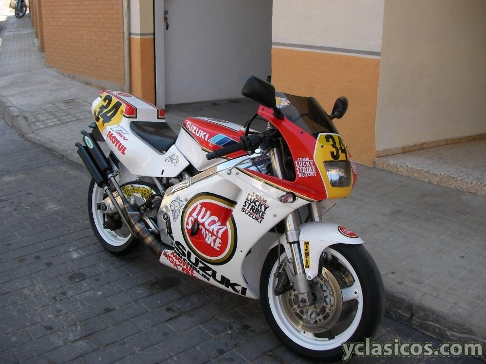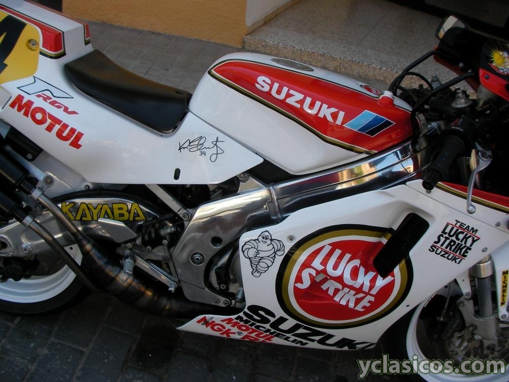 Perfecto estado, cilindros con no mas de 2. 000 km, tapas valvulas tyga, escapes jollymoto, , replica exacta d rgv 500 del 91 con todos sus adhesivos, autografiada por kevin schwantz en su ultima visita a valencia, chasis totalmente pulido a espejo, tiene mucha faena de pintura y muchas horas invertidas en ella, va muy bien, slick dunlop delantero y dunlop d 253 trasero nuevos, recien revisada y carburada,precio negociable