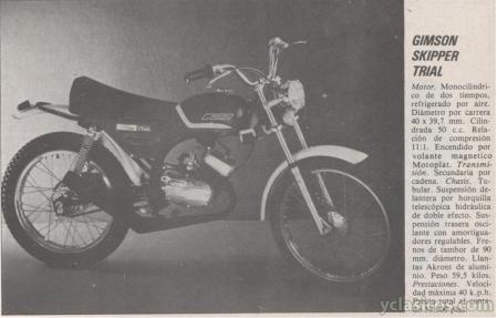 Motor. Monocilindrico de dos tiempos, refrigerado por aire. Diámetro por carrera 40 x 39,7 mm. Cilindrada 50 ce. Relación de compresión 11:1. Encendido por volante magnético Motoplat. Transmisión. Secundaria por cadena. Chasis. Tubular. Suspensión delantera por horquilla telescópica hidráulica de doble efecto. Suspensión trasera oscilante con amortiguadores regulables. Frenos de tambor de 90 mm. diámetro. Llantas Akront de aluminio. Peso 59,5 kilos. Prestaciones. Velocidad máxima 40 k.p.h.