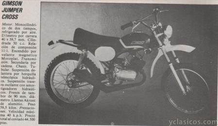 Motor. Monocilíndrico de dos tiempos, refrigerado por aire. Diámetro por carrera 40 x 39,7mm. Cilindrada 50 ce. Relación de compresión 11:1. Encendido por volante magnético Motoplat. Transmisión. Secundaria por cadena. Chasis. Tubular. Suspensión delantera por horquilla telescópica hidráulica. Suspensión trasera oscilante con amortiguadores hidráulicos. Frenos de tambor de 90 mm. diámetro. Llantas Akront de aluminio. Peso 59,5 kilos. Prestaciones. Velocidad máxima 40 k.p.h.