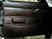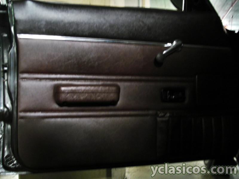 Tapicería en marrón y paneles de puerta en negro y marrón.