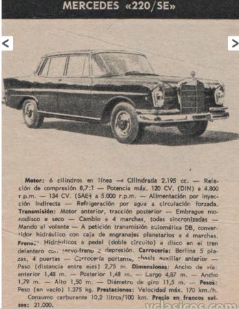 Vendo Mercedes 220 SE con matrícula histórica, ITV al dia y en perfecto orden de funcionamiento. Fecha de primera matriculación en enero de 1965. Dirección asistida. Aire acondicionado. Para verlo...