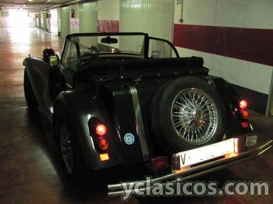 Coche deportivo para coleccionista fabricado en Inglaterra, solo hay 20 en toda España, cabrio con capota de lona, ITV pasada hasta diciembre del 2013, llantas de 15 pulgadas y neumáticos de 165 de ancho, con la rueda de repuesto en la parte trasera, 75CV de potencia, asientos de cuero de color beige, volante de madera, biplaza, radio cassette, cuenta kilómetros en millas, 23.103 millas – 37.172 Km, no fumador, motor en perfecto estado, siempre guardado en garaje particular, color verde oscuro oliva, un capricho.
