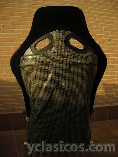 Uno de los asientos es un Recaro Profi-A Racer y el otro un Recaro SPG Pole Position. Ambos son de competición con pesos muy reducidos: 2,7 kilos, construidos en kevlar y tapizados de nomex. De estructura están perfectos sin ningún tipo de daño. El tapizado de nomex es sensible y necesitarían una limpieza o retapizado si se van a usar para la calle.