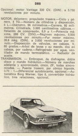ASTON MARTIN DBS - Ficha Técnica de época 1972