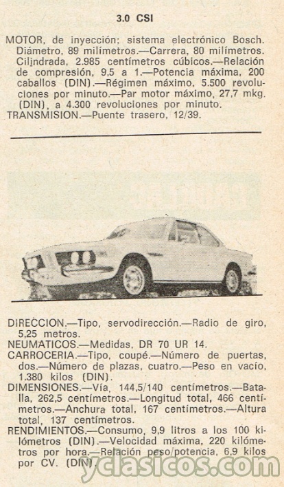 MOTOR: de inyección: sistema electrónico Bosch. Diámetro. 89 milímetros. Carrera. 80 milímetros. Cilindrada. 2.985 centímetros cúbicos. Relación de compresión. 9.5 a 1. Potencia máxima. 200 caballos (DIN). Régimen máximo. 5.500 revoluciones por minuto. Par motor máximo, 27.7 mkg. (DIN), a 4.300 revoluciones por minuto.