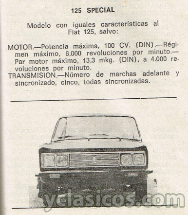 Modelo con iguales características al Fiat 125, salvo: