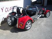 Replica del famoso lotus seven, rojo y cromado, motor 2000cc con carburadores laterales doble de webber, arbol de levas deportivo, valvulas endurecidas. . . un coche muy bestia pero muy muy bonito, matricula española y itv al dia, cochesyclasicos. com.