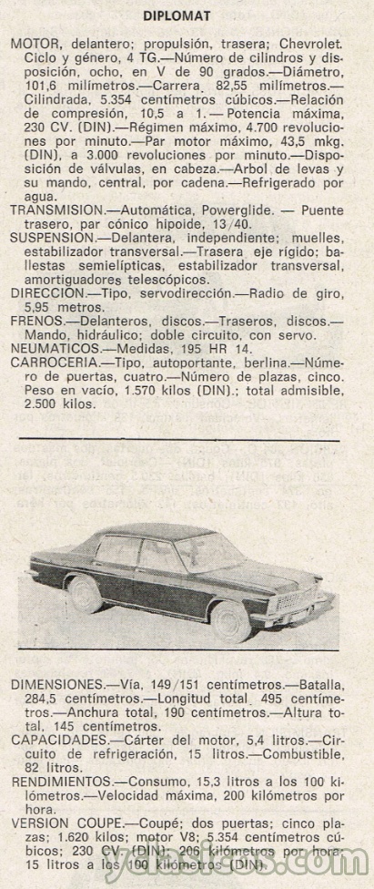 OPEL DIPLOMAT - Ficha Técnica de época 1972