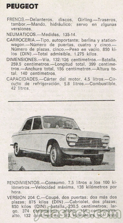 PEUGEOT 204 - Ficha Técnica de época 1972