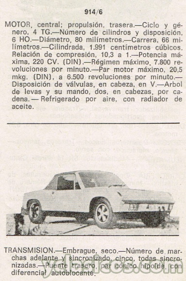 PORSCHE 914 / 6 - Ficha Técnica de época 1972