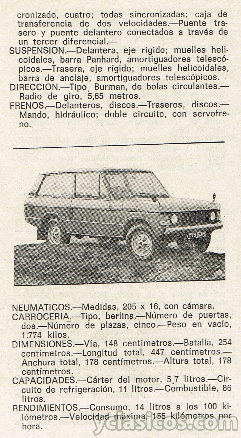 DIMENSIONES: Vía. 148 centímetros. Batalla, 254 centímetros. Longitud total, 447 centímetros. Anchura total, 178 centímetros. Altura total, 178 centímetros.