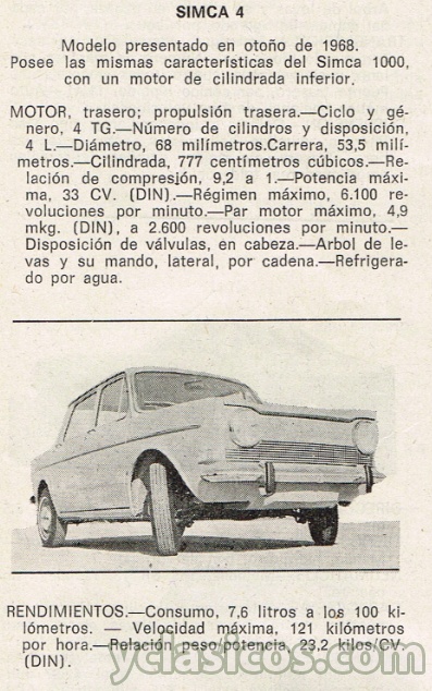 Posee las mismas características del Simca 1000. con un motor de cilindrada inferior.