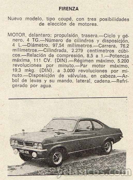Estos son los VAUXHALL FIRENZA que actualmente hay disponibles en venta en este portal (www.yclasicos.com)