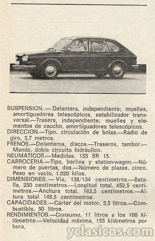 CARROCERIA: Tipo, berlina y station-wagon. Número de puertas, dos. Número de plazas, cinco. Peso en vacío, 1.020 kilos.