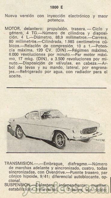 VOLVO 1800 E- Ficha Técnica de época 1972
