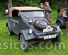El Kübelwagen era la versión militar del Volkswagen Escarabajo. Fue diseñado por Ferdinand Porsche, y en la Segunda Guerra Mundial se fabricaron más de 50.000 unidades. No tenía tracción a las cuatro ruedas, como el Jeep. Algunos modelos llevaban - debido a la escasez de gasolina - un quemador-generador de madera instalado encima del capó que se alimentaba de madera o coque.