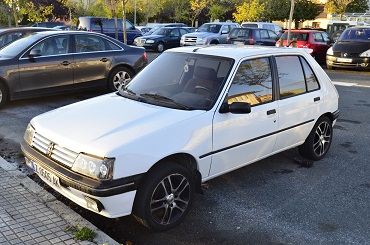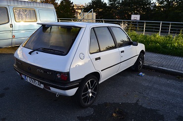 Peugeot 205 GT del año 1990. Recién saneado de Chapa, y pintado al completo Fuera y Dentro. Tapicería nueva Mod. Golf GTI, con paneles puertas y techo incluidos. Volante Momo, con piña Original. Faldón delantero GTI con antinieblas originales. LLantas de aleación de 15". Faros delanteros Ojos de ángel. Traseros tipo Lexus. Alerón trasero. ITV pasada en 09/12. Motor en perfecto estado.Elevalunas eléctrico delantero, Avisador de luces encendidas, y otros extras más.Con el vehiculo se entregaran, faros de origen, intermitentes delanteros y traserosde origen, volante original, cuatro llantas 13" con sus neumáticos, 4 neumáticos para llanta 15", un juego de separadores de ruedas, y cuatro aletines universales.