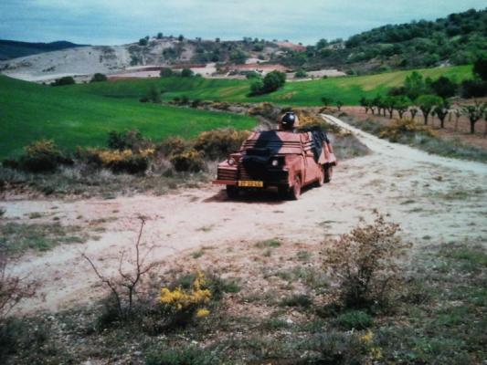 Tanque Artesanal único, construido sobre la base de un Fiat Uno Comercial de la última generación. El vehículo funcionaba la última vez que se usó, lleva 3 años parado, por lo que necesitaría ponerlo a punto. El segundo eje trasero, es sólo un adorno, y el vehículo es tracción delantera. El interior, aunque modificado, comparte elementos originales del Fiat.