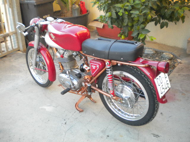 Ducati Élite 250cc. Año 1963. Cinco velocidades, encendido eléctrico. Totalmente restaurada por profesionales. Color rojo. El motor arranca, caja de cambios bien, y embrague bien. Esta pintada y cromada perfecta.