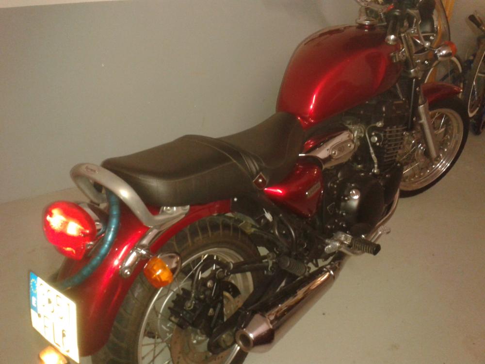Preciosa Triumph Legend del 98, muy mimada, siempre en la familia. Menos de 33.000km. Neumáticos con apenas 2500km, revisión hecha hace 1000 km con cambio pastillas de freno traseras. Cúpula original Triumph. Transmisión cambiada a los 29200km. Está muy cuidada y es una moto muy noble. Cambio por no usar y querer moto más pequeña para uso urbano. Se daría con la ITV recién pasada. Se aceptaría Vespa como parte del pago.