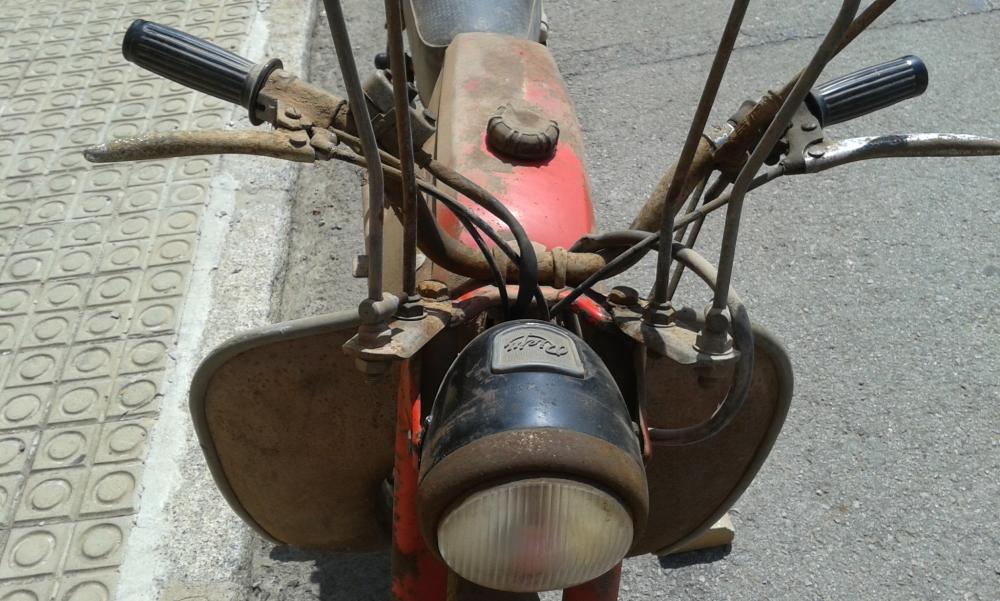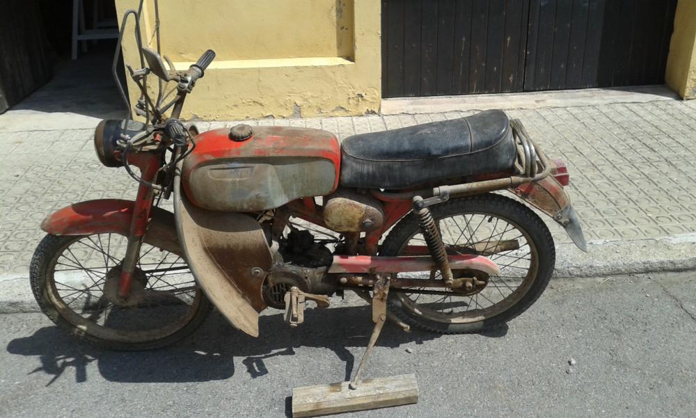 Rieju P3 C 49, sin documentación, motor gira y hace chispa, moto totalmente completa, tiene óxido, los pedales están estropeados, el soporte de la maneta freno delatero está roto.