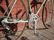 Lleva cambio trasero Peugeot Simplex. Manetas de cambio y desviador Simplex. Platos, bielas y puentes de freno originales Peugeot. Pedales Notario. Llantas cromadas. Manetas de freno Mafac.