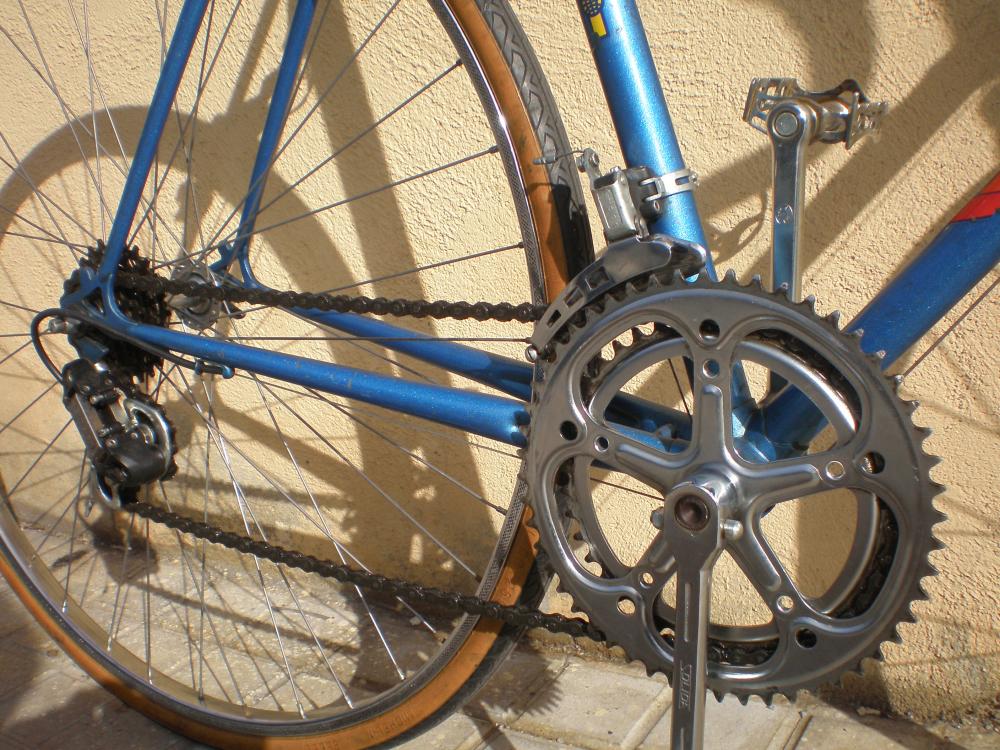 Lleva cambio trasero, maneta de cambio y desviador Simplex. Pedales notario. Pinzas y manetas de freno Olimpic. Llantas cromadas. Bielas solida. Cinta del manillar nuevo y asiento retapizado nuevo.