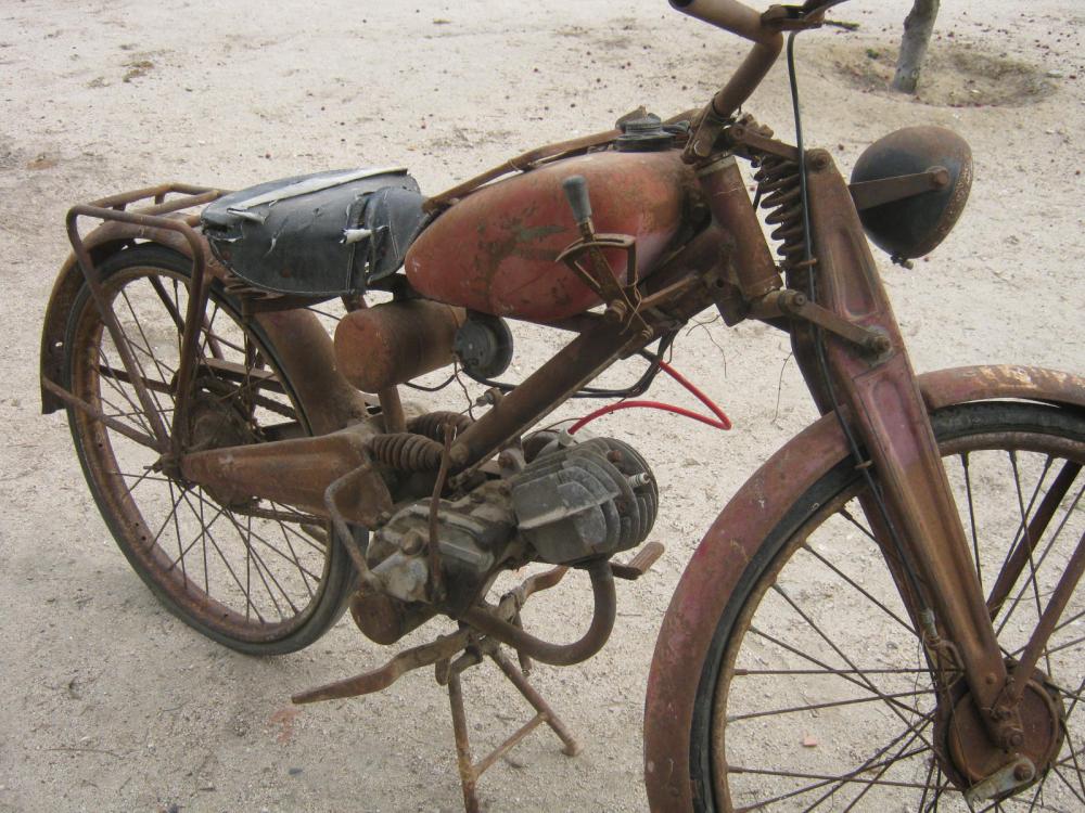 Moto Guzzi 65 completa a falta de carburador pero con buena base para restaurar.