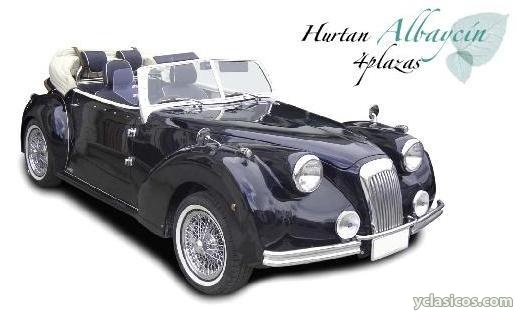 Autentico oferton de este capricho de coche Hurtan Roadster modelo Albaicín de 4 plazas, descapotable estilo retro inglés tipo Jaguar MKII o Morgan. Motor Renault Clío 1. 4cc, 16V Gasolina, 5 velocidades, con 30.000 Km. El diseño por encargo, imposible encontrar dos Hurtan iguales. Color Azul Marino. Capó trasero con rueda de repuesto. Aire acondicionado. Dirección asistida. Llantas radios neumáticos. Carrocería de fibra de vidrio. Volante y salpicadero de madera con asientos de cuero en blanco. Itv pasada. Capota en Burdeos y Capota inglesa en cuero blanco. Chollo por 16000€ negociables. Para cualquier consulta +34644225128 Felipe Bravo