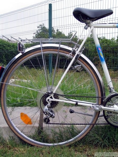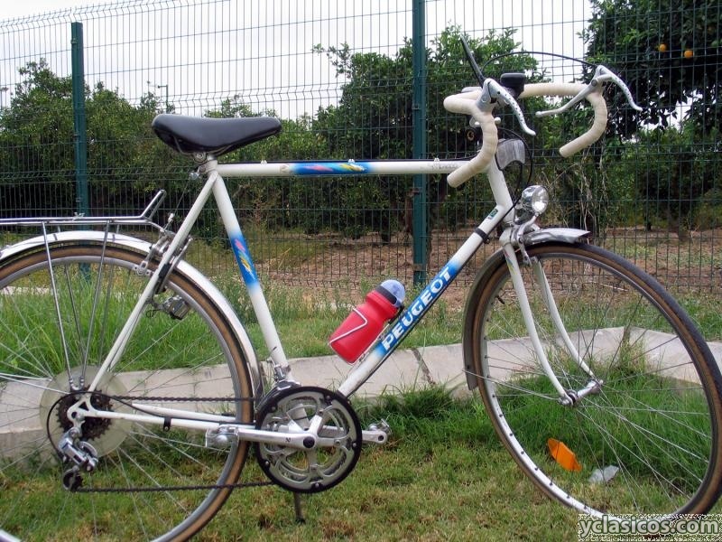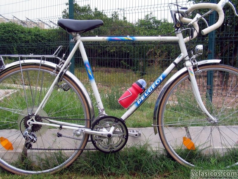 Bicicleta clásica Peugeot, carretera y ciudad. Cambio de platos y piñones por palancas. Guardabarro de acero inoxidable. Transpotín. Doble maneta de freno por rueda. Funcionamiento correcto.
